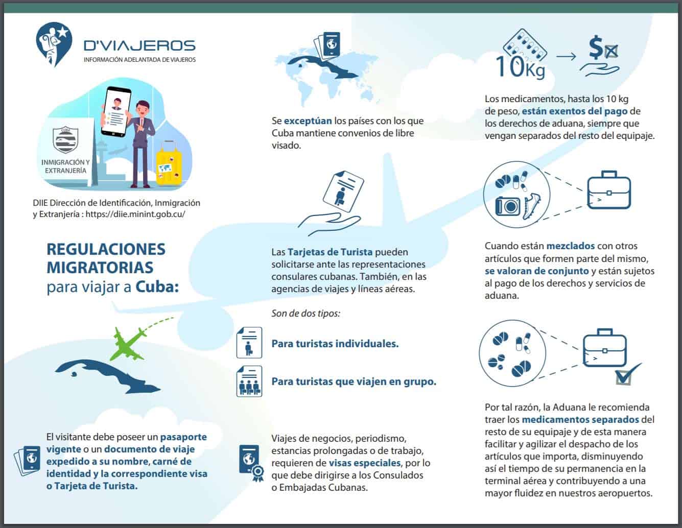 The form, called d’viajeros, must be completed online 48 hours before travel, in order to obtain a qr code which must be shown to the airline and border authorities. D'viajeros is a mandatory digital process to provide advance information in order to expedite entry procedures to cuban territory. This form is required by the directorate of identification,.